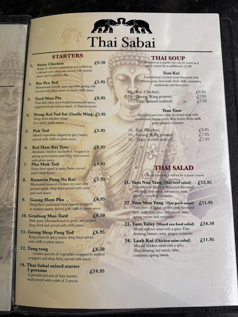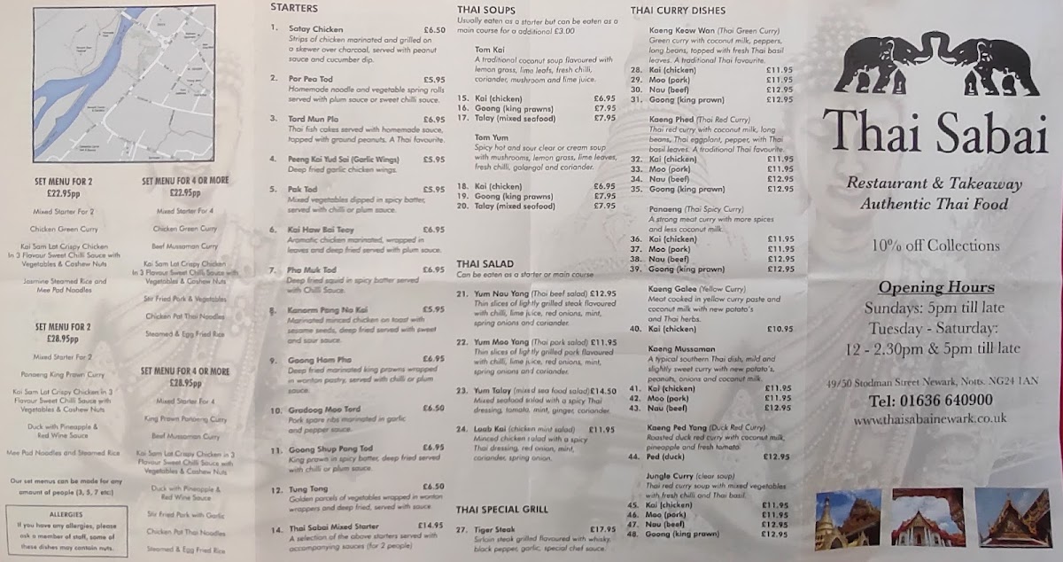 If you're looking for a delightful and authentic Thai dining experience, the Thai Sabai Menu offers something for everyone. Located at 49 Stodman St, Newark NG24 1AN, this spot brings the bold flavors of Thailand to your table with every dish. From aromatic curries to sizzling stir-fries, each plate is crafted with fresh ingredients and traditional spices, giving you that true taste of Thailand. Whether you're in the mood for a comforting bowl of Tom Yum soup or a hearty Pad Thai, the menu promises to transport your taste buds to a vibrant street food market in Bangkok. Every dish is prepared with care, ensuring you'll enjoy a memorable meal, whether dining in or ordering out.